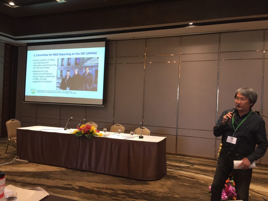 Atty. Mikiko Otani, who discussed the implementation of the UN CRC Guidelines on the Implementation of OPSC, then talked about the drafting of UN CRC General Comment (GC) 24, which replaces GC 10, on Children’s Rights in the child justice system. The GC addresses the need to clarify the Committee’s position on the minimum age of criminal responsibility and provides for an opportunity to promote some important policies, reflect the development and address new issues. Among the key points are the following: replacement of the long-used terminology “juvenile justice” into “child justice system,” setting a higher minimum age of criminal responsibility, promotion of diversion of a child throughout the proceedings, and the direction towards building a multi-disciplinary, comprehensive child justice system and setting up of child justice courts.