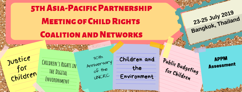 Representatives of various child rights organizations and academic institutions from 22 countries joined this year’s Asia Pacific Partnership Meeting of Child Rights Coalitions and Networks (APPM) held on 23-25 July 2019 in Bangkok, Thailand.