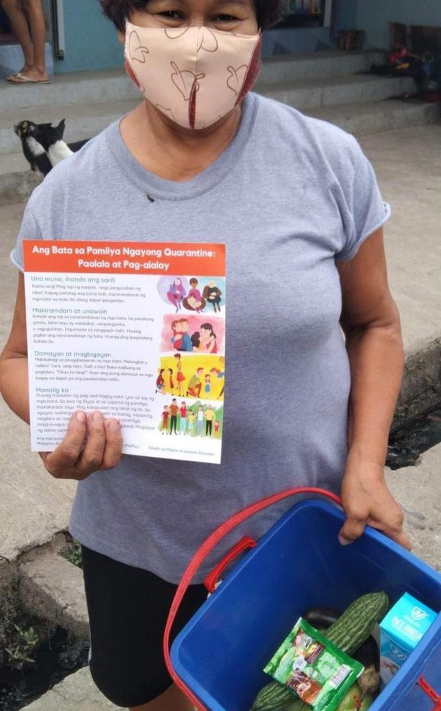 The pandemic laid bare the inequity in Filipino households’ access to the internet and digital devices. Considering that not everyone has access to the internet and might not be able to view and use the material online, the content was developed and printed as a set of handy fans, distributed to identified 22 partner local government units (LGUs) and community organizations in the regions of Luzon and Mindanao in 2020. Our partners used the fans as an awareness-raising tool during their food distribution efforts, community health sessions, mobile health clinics, and house-to-house visits. The materials were reprinted later in 2020 and distributed to communities through our partner community organizations. Some sets were disseminated through 12 community pantries organized by our partners in Metro Manila and nearby cities and municipalities.