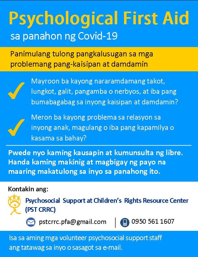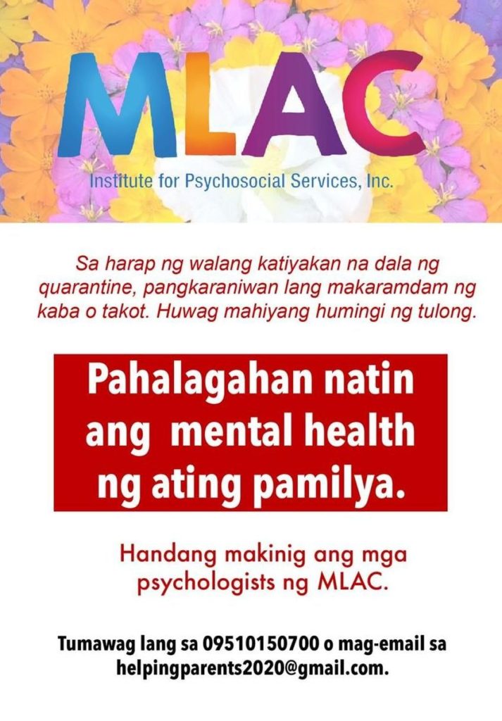 These are Psychological Helplines that you may text or call in case you need psychosocial support. There are trained counselors who can answer your message and calls and who are willing and able to help you: